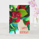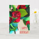 Uma bela arte inspirou um cartão de aniversário com um adorável design floral de uma pintura original de aquarela de flores vermelhas da camélia com folhagem verde do artista Sacha Grossel. Estas flores são coloridas, vibrantes e brilhantes e este design botânico colorido de arte floral ficaria bonito em qualquer ambiente. Uma peça de arte original de cor brilhante com fundo de cor personalizável bege neutro.