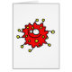 Uma bonita criatura de gérmen bacteriano vermelho em cartoon em um cartão de saudação.