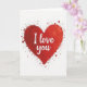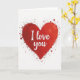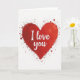 This greeting card shows a large deep red heart centered on a white background, with a painted look and visible brush-like marks. Around the heart, small red splatters spread outward like drops of paint, giving the design a lively, excited feel. Inside the heart, the words “I love you” appear in white cursive-style lettering, placed right in the middle where your eyes land first. The bright red against the plain white space keeps the focus on the message and the feeling behind it ❤️. The slightly uneven edges and scattered drops make it feel honest, like love that can’t be kept perfectly contained. It’s a meaningful card to give when you want to say something simple and true without overexplaining. Whether it’s for a partner or someone close to your heart, it helps you share Valentine’s Day feelings in a warm, straightforward way 🥰. Wishing you an easy, heartfelt moment for sharing Valentine’s Day sentiments.