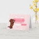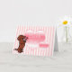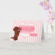 Arte canina única e engraçada pintada por Naomi Ochiai do Japão. Bons e engraçados artigos de presentes de desenho animado Dachshund para fãs Dachshund!! Um adorável cachorrinho Red Smooth Hired Doxie está dando sua pequena flor cardíaca para sua mãe. Você pode personalizar texto e muito mais! Listras cor-de-rosa e brancas e cartões de agradecimentos brilhante de corações cor-de-rosa.