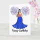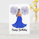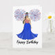 Ilustrações da Moda de 4 de julho com grandes fogos de artifício no cartão de aniversário de fundo. Desenho bonito e feminino de uma mulher em uma camisa listrada e uma longa saia azul. Ela também está vestindo óculos de sol de estrela azul. Bonita e única design de 4 de julho para o verão. Este cartão pode ser usado para o aniversário de julho. Adicionar um dentro de mensagem especial.