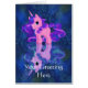 Um unicórnio adorável, do kawaii-estilo nas máscaras do rosa e os suportes do roxo refletiram em uma piscina de água rippling.