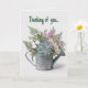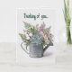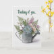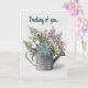 Este cartão apresenta uma ilustração de um regador com suculentas, flores e folhagens com uma saudação editável acima dele. No interior há uma mensagem editável. Você pode alterar as mensagens ou excluí-las para criar um cartão em branco. Você também pode alterar o estilo da fonte, tamanho e cor. A cor do fundo em todos os lados também pode ser alterada. Este cartão de cumprimentos versátil pode ser usado para aniversários, condolências, pensando em você, cartões de agradecimento, etc.