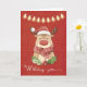 Esta rena bonita está vestindo um chapéu e cachecol e cercada de vermelho com fundo bolinhas creme. Uma corda de luzes está sobrecarregada. Deseje à sua família e amigos o melhor Natal de sempre para a feliz!