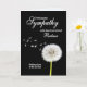 Envie sua simpatia pela perda de um parceiro. Um relógio de dandelion sereno, suas sementes flutuando suavemente ao vento, contra um pano de fundo escuro. O cartão evoca paz, memória e o fluxo natural da vida.