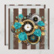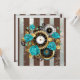 Relógio antigo e patenteado, adornado com joias, mãos de ouro e algarismos latinos com rosa de turquesa sobre fundo castanho e listrado. Estilo Steampunk.