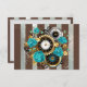 Relógio antigo e patenteado, adornado com joias, mãos de ouro e algarismos latinos com rosa de turquesa sobre fundo castanho e listrado. Estilo Steampunk.