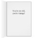 O interior da reserva 1951 que do vintage cartão do aniversário lê, "você não são velho, você são vintage!" Pôr uma rotação positiva sobre "sobre a mordaça velha do monte".
