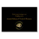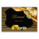 Uma textura de seda dourada cintilante e luxuosa atravessa dois anéis de casamento sobre um fundo preto dramático com uma faixa em estilo Deco para dar ao design um visual chique e glamoroso para personalizar para cada convidado na mesa
