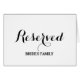 Cartão reservado do sinal da mesa ou do assento para o lugar. Tipografia elegante da caligrafia do roteiro para a festa de casamento extravagante, o chá de panela chique, o noivado ou o aniversário. Cartões de nota elegantes da colocação com nome da família dos noivos, dos convidados do VIP, das damas de honra, dos padrinhos de casamento, do melhor homem, da madrinha de casamento etc.