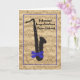 Retirement card for a musician with a saxophone, a blue bow, and a sheet of notes. Thanks to Obsidiandawn and the Hungryjpeg for some of the elements in the design.