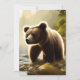 Um cartão de saudação plano para amantes da vida selvagem, com IA gerou pintura digital de belo urso pardo em um riacho montanhoso.