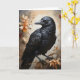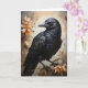 Cartão Retrato de Corvo Preto Majestoso Flores Lua Em Bra