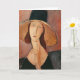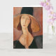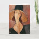 Cartão Retrato de Jeanne Hebuterne em um chapéu grande
