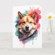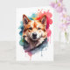 Envie sorrisos com este cartão de cumprimentos de aquarela adorável! Com um cão brincalhão em estilo de arte de respingo vibrante, é perfeito para aniversários, agradecimentos ou bilhetes de 'apenas porque'. Ótimo para amantes de cães e donos de animais de estimação. Em branco por dentro para sua mensagem pessoal.