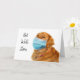O recuperador de Ouros avermelhados veste uma máscara facial e deseja ao destinatário um cartão de saudação de amantes de cães de recuperação rápida