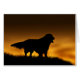 Ouro recuperador parado em silhueta contra um céu ouro esperando fielmente se é para um retorno para casa ou se uma junção no cachorro da Ponte do Arco-íris amou um cartão de saudação