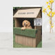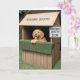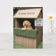 Um Retriever de Ouro está sentado a dentro de um beijo de papelão com uma placa que diz "KISSING BOOTH $1,00" para um aniversário. O texto é editável.