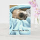 Anime um amigo doente ou parente com este cartão fofo! Design apresenta uma fotografia de um cão que recupera o ouro adormecido e que está embrulhado num cobertor azul. O texto personalizável diz: "Ouvi dizer que você está doente. Vai logo."