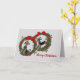 Cartão Retro Black Poodles in Poinsettia Wreaths