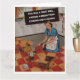A dona de casa dos anos 50 instalando azulejos de chão sarcasticamente dizendo que precisava de uma pausa de cozinhar e limpeza. O humor da nova dona de casa é mais do que arte, é uma oportunidade de aliviar a perfeição irrealista exigida das mulheres nos anos 50 e anos sessenta. Nós rimos hoje, mas era realidade na vida doméstica naquela época. Aproveite!