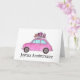 Cartão de aniversário francês. Um retrô Fiat 500 em aquarela. Pour ce jour joyeux toca as felicitações! Um aniversário para comemorar? Envie um cartão de aniversário de carro de cor d'água para sua família e amigos e deseje a eles o aniversário mais doce de todos! Este cartão de aniversário está disponível em algumas línguas não inglesas e como um cartão personalizável para o desejo, a idade e o destinatário do aniversário.