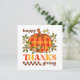 Cartão de saudação colorida com estilo de ranhura retrorreflector. Imagens retrorreflectoras "Feliz Dia de Ação de Graças", com flores bonitinhas, estrelas e uma abóbora de cadarço. O cartão contém uma mensagem de boas-vindas maravilhosa no verso, que pode ser personalizada.