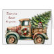 Na frente deste cartão de Cartões de natal bonito, um caminhão de fazenda com estilo retrô é decorado com uma coroa de Natal e carregares em casa, uma árvore cada verde recentemente cortada. Um Cachorro Siberiano veste um chapéu de Papai Noel vermelho e branco e espia para fora do caminhão. O texto vermelho de um lado diz "Da nossa casa à sua...", e o sentimento continua a ser dentro. Todo o texto, frente e dentro, pode ser facilmente personalizado por você para dizer o que quiser.