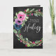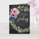 Encorajar alguém a recuperar-se de uma doença ou lesão com este cartão único que apresenta esta mensagem tipo caligrafia em branco, "Rezando por sua completa cura." O plano de fundo inclui a camada floral de aquarela em fundo de quadro chalkboard digitalmente renderizado. Dentro inclui esta mensagem (que pode ser personalizada)... "À medida que você se recupera, eu espero que isso te encoraje a saber que você é amado, apreciado e levantado em oração."