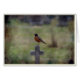Um pino empoleirado numa tombstone que tem a forma de uma cruz. Esta foto foi tirada em um cemitério em Poughkeepsie, NY em um belo e ensolarado dia por Debbie Quick of Debs Creative Images. Para ver mais fotos de Debbie, visite o site: www.debscreativeimages.com