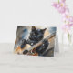 Arte de salpicadura de acuarela de un gato negro tocando la guitarra en esta tarjeta de felicitación en blanco.