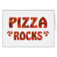 Os amantes da pizza podem ter o divertimento com este design colorido com espirais e as palavras - rochas da pizza.