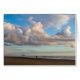 Um notecard vazio que mostra um céu azul grande bonito junto com rochas gêmeas na praia de Rockaway, Oregon.