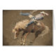 Imagem de alta ação de um cavaleiro rodeio tentando ficar em um cavalo de balanço. Pastel da artista prêmio Kathie Miller.
