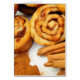 Canela em pó e picante com minicanela assada freah rolando em uma placa branca