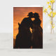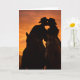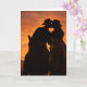 Celebrate love with this romantic western cowboy couple greeting card. Featuring a beautiful silhouette of a cowboy and cowgirl sharing a kiss while sitting on their horses, this design is set against a glowing sunset that captures the warmth and beauty of country romance.