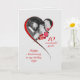 Um cartão de aniversário de casamento muito romântico e elegante para a sua esposa. Adicione uma foto para tornar este cartão totalmente único. Um coração vermelho envolve sua foto com rosas vermelhas espalhadas ao redor.