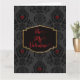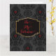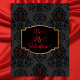 Um elegante e sofisticado design gótico antiquado vitoriano em damasco, com um coração gótico em filigrana vermelha. Um rótulo ornamentado com bordas douradas envolve a mensagem "Seja Meu Namorado" em carmesim.