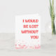 Procurando a maneira perfeita de dizer a seu amado o quanto você os estima? Este cartão "Eu ficaria perdido sem você" captura a essência do verdadeiro amor e apoio inabalável. Ideal para aniversários, Dias de os namorados, ou simplesmente expressar seus sentimentos, este cartão é um gesto significativo e sincero.