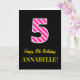 Cartão Rosa Divertido - Riscado "5"; Feliz Aniversário de