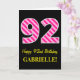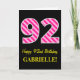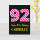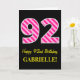 Cartão Rosa Divertido Striped "92"; Feliz 92º Aniversário