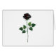 Rosa preto simbólico, desenhado artisticamente, com caules verdes e folhas sobre fundo branco. Rosa preto.