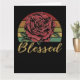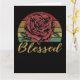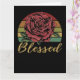 Envie este cartão de saudação em estilo vintage angustiado com sua própria mensagem personalizada na frente e no verso. Apresenta uma rosa vermelha clássica em frente a um fundo retrorreflector afligido e a palavra "abençoado" em fonte dourada.