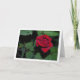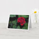 Cartão de Saudação Rosa Vermelha Única e Folhas Verdes. Você pode personalizar facilmente este produto gratuitamente se desejar adicionar texto ou alterar a cor do fundo.