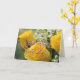 Estas belas rosas amarelas certamente trarão alegria e felicidade para todos que as olharem. Este cartão é uma escolha perfeita para quase qualquer ocasião, incluindo pronto recuperação, aniversário, pêsames, aniversário de 50 anos ou bodas de ouro, um convite para um casamento, chá de bebê, festa ou até mesmo uma casa aberta ou talvez um anúncio de visita a um clube de flores. Para ver selos correspondentes, mais cartões com rosas amarelas e outros itens de presente, vá para a minha SEÇÃO DE ROSAS, ou digite rosas na minha caixa de pesquisa na página inicial perto do topo da minha barra lateral direita.