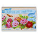 Esta é uma das imagens as mais agradáveis do vintage de rosas diferentes da cor. É apenas perfeita. Há cor-de-rosa e rosas vermelhas. Voar acima deles é uma borboleta. É de uma etiqueta francesa.