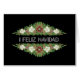 Um Cartão de Natal floral, chique, com balas de Rosas de Natal vermelho e branco, Holly e Ivy sobre fundo negro e a saudação espanhola 'i Feliz Navidad' em na moda, em letras modernas, em branco. De um design pintado à mão por Judy Adamson. Sinta-se à vontade para adicionar seu próprio texto de dentro.