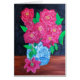 A pintura a óleo original pelo artista, Susan Payne-Trutna de rosas cor-de-rosa em um vaso chinês é caracterizada neste cartão de nota.