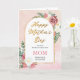 Rosas rosa e branco elegantes e sofisticadas com orquídeas rosa, bem como eucalipto e samambaia, folhagem verde-sage e uma moldura oblonga em tom dourado, design "Feliz Dia das Mães" "Para a Melhor Mãe do Mundo, de Sua Filha" com flores coordenadas no interior, juntamente com sua mensagem única ou use a nossa. Todo o texto é editável, exceto "Feliz Dia das Mães". Certifique-se de adicionar sua assinatura única no interior. Design composto por Holiday Hearts Designs.