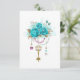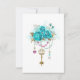 Chave de ouro antiga com rosas de turquesa de tendência, decoradas com folhas de ouro branco e miçangas cor-de-rosa e azuis. Cor agradável. Rosas de turquesa. Ouro branco. Tifania azul.